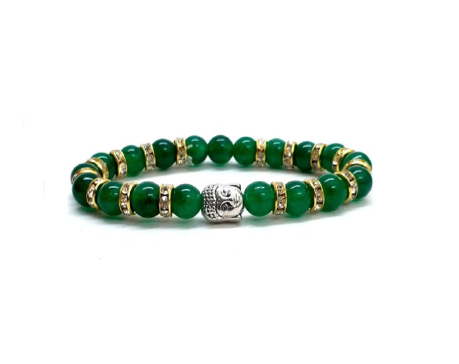 Green Aventurine Zircon Finished 8 mm Stretch Bracelet