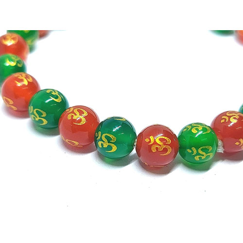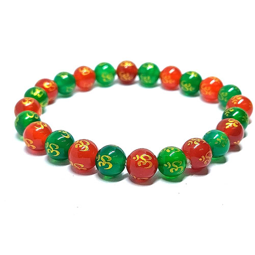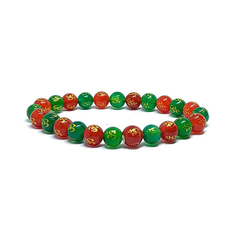 Hindutwa Auspicious Om Lucky Urja Symbol Engraved Lucky Charm Protection And Peace Green Onyx Crystal Bracelet For Men And Women