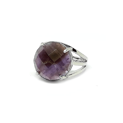 Natural Amethyst Crystal Diamond Cut Free Size Ring