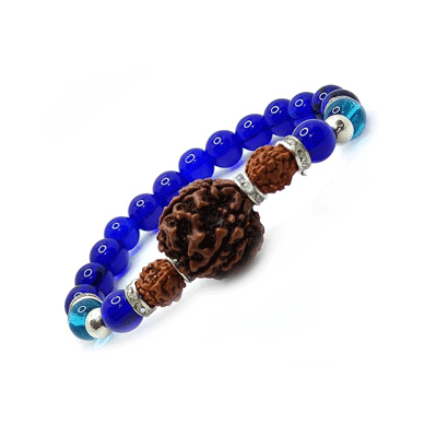 Natural Panch Mukhi Rudraksh Blue Crystal Bracelet