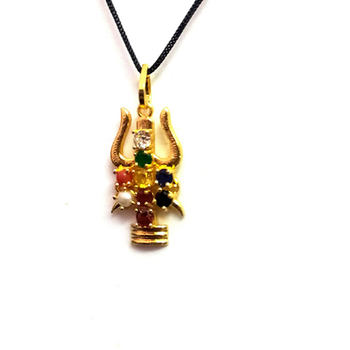 Navgraha Nav Ratna Trishul Shaped Ashtadhatu Gold Plated Pendant For Men And Women