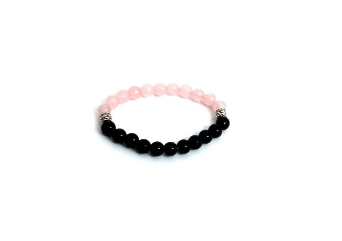 ROSE QUARTZ & BLACK ONYX STONE STRETCH BRACELET ( 8 MM ) Black Onyx is associated with our BASE CHAKRA.