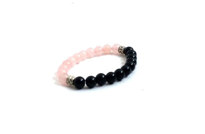 Rose Quartz & Black Onyx Stone Stretch Bracelet