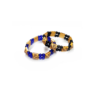 Set Of 2 Om Aum Symbol Pyramid Shaped Stretch Lucky Charm Multi Bracelet